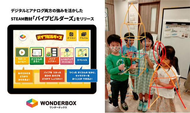 ワンダーファイ株式会社(本社:東京都千代田区、代表取締役:川島 慶)が提供するSTEAM教育領域の教材をご自宅で楽しみながら学べる通信教育「ワンダーボックス」に、新たなトイ教材「パイプビルダーズ」が加わりました。