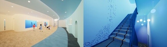 高輪がかつて海に面していたことから、その場所の記憶を引き継いでいくという思いを込め、「海」をコンセプトにしており、広々としたピアッツァ(広場)と、制作や絵画ができるアトリエスペースを備えています。また、保護者様が利用できるコワーキングスペースも設置予定。お迎え前に仕事ができるなど、保護者の方が自由に使える空間です。