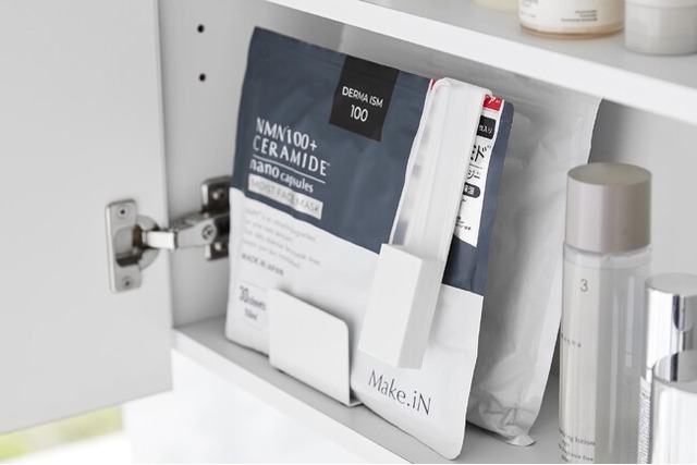 フェイスマスクが自立し、洗面所がスッキリまとまる!