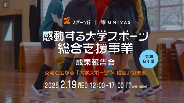 一般社団法人大学スポーツ協会(所在地:東京都千代田区、会長:福原紀彦、以下 UNIVAS)は、スポーツ庁委託事業「令和6年度 感動する大学スポーツ総合支援事業」において採択された14大学18事例による成果報告会を開催します。本イベントでは、各大学の取り組みを発表するとともに、ポスター展示を通じて情報交換を促進し、「大学スポーツ×地域」の可能性を広げます。