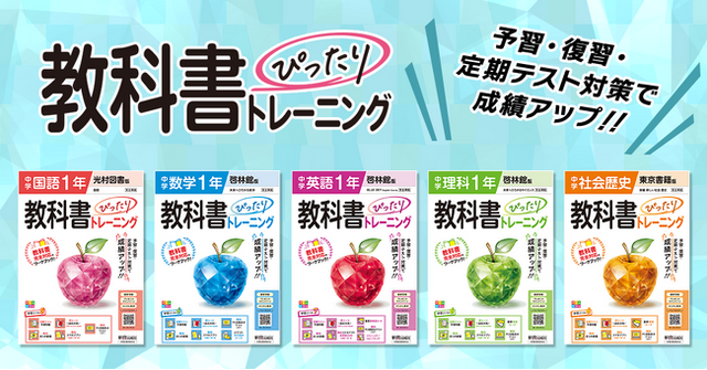 『中学教科書ぴったりトレーニング』は、各教科書会社の正式な許諾のもと、教科書に完全対応して制作している学習参考書です。