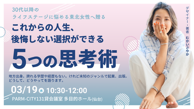 このような考えから、地方出身で現在はデザイナーや著者として活躍されているむかいさやか氏を講師に、仙台でのリアルセミナー開催に至りました。