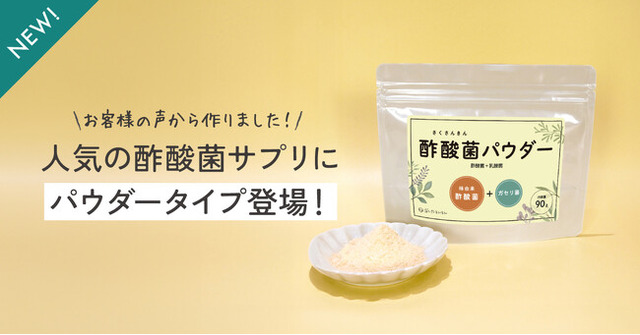これからの季節、菌活にも酢酸菌がおすすめ!酢酸菌サプリに要望の多かったパウダータイプが新登場。