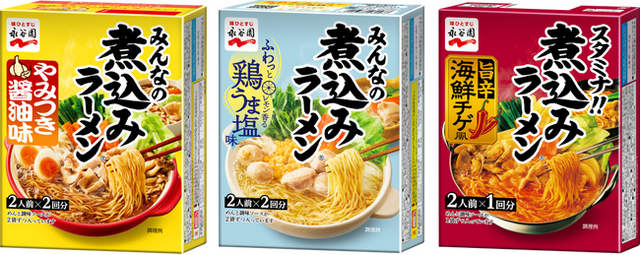 株式会社 永谷園(社長:掛谷 浩志、東京都港区)は、煮込むことで麺・具材・スープが三位一体となって美味しいみんなで囲める団らんラーメンとして、“煮込みラーメンファン”も待望の春夏限定メニュー「煮込みラーメン(R) やみつき醤油味」「同 鶏うま塩味」(税抜430円)と、「二人前 煮込みラーメン(R) 旨辛海鮮チゲ風」(税抜330円)を2025年3月3日(月)より全国で新発売いたします。