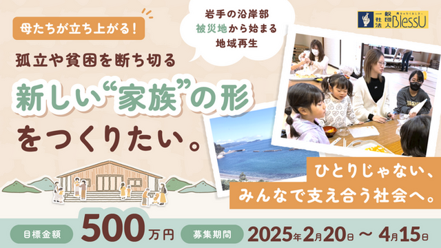 一般社団法人ブレスユーでは、岩手県沿岸部のシングルマザーのデジタルスキル醸成と就労支援に取り組んでおります。東日本大震災から丸14年が経過する今、復興の先にある共生社会の創造を目指し、多世代・多機能型の地域活性化拠点「リタニティハウス」の建設・運営を行います。