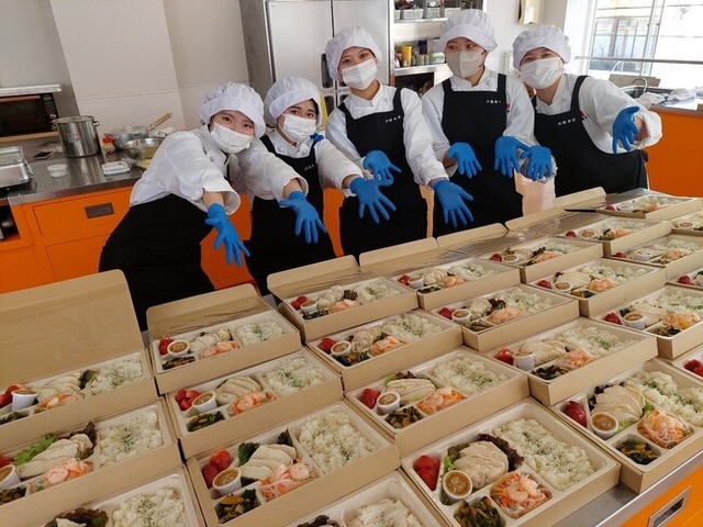 3つの校舎で本館(柾谷小路側古町6番町)では、シェフ学科がレストラン運営を実施し、日本料理・中国料理・イタリア料理・フランス料理を計200食提供。1年制課程の調理師学科が松花堂弁当を2日間で140食以上販売しました。
