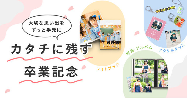 「フォトブック」「写真プリント・アルバム」「アクリルグッズ」がそれぞれお得にお求めいただけるこの機会に、卒業アルバムや卒業記念グッズを作ってみませんか?