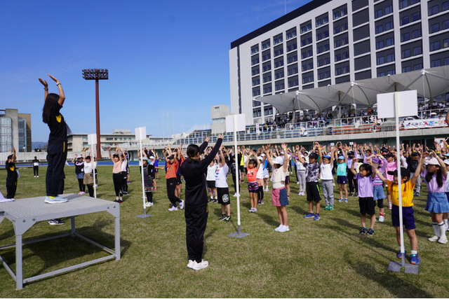 九電工陸上競技部の選手たちと一緒に、速く走るコツや基本動作を学びます。赤崎暁選手ほか日本を代表する選手も多数参加します。