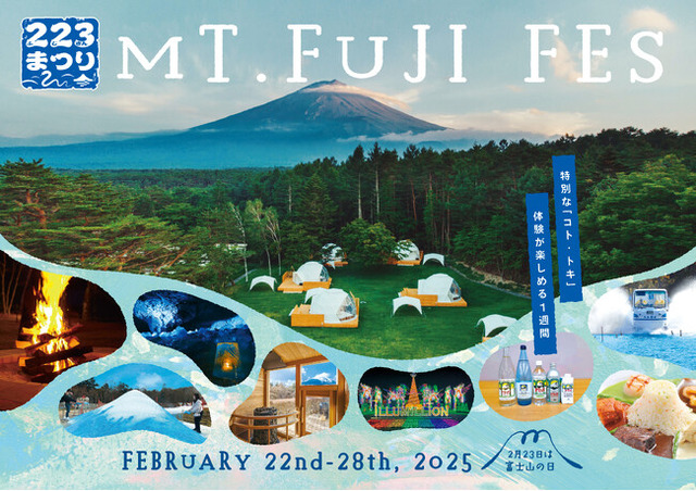 富士急行株式会社(所在地:山梨県富士吉田市)では、2025年2月23日(日)の「富士山の日」を記念して、「223(ふじさん)まつり」を開催いたします。期間は2月22日(土)~2月28日(金)の1週間、富士山周辺エリアに位置する様々な富士急グループの施設において、お客様が普段は体験できない特別な「コト・トキ」を提供するイベントです。
