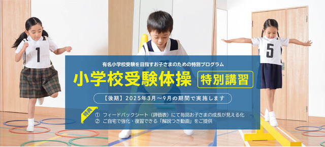 各小学校の過去の運動テストから出題頻度の高い項目を抽出した講習と動作テストがセットになった特別プログラム
