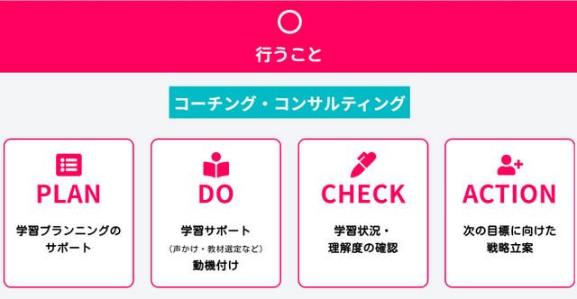 つきっきりで教える個別指導や家庭教師とは違い、時間単価ではない伴走の形をとることによって、ほかの習い事とも併用可能なリーズナブルな価格でサービスをご提供します。