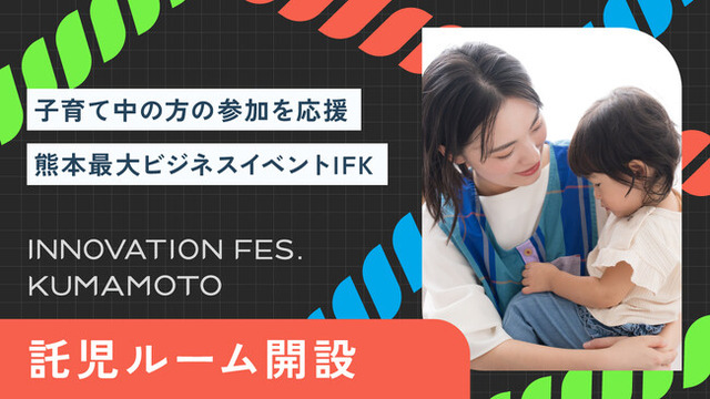熊本県・熊本市・熊本県内企業5社(※1)によるFIVE RINGS実行委員会は、2025年2月27日(木)熊本城ホールで、大規模ビジネスイベント「Innovation Fes. Kumamoto(イノベーションフェスクマモト)」を開催します。本イベントでは、子育て中の方々も安心して参加できるように、託児ルームを設置いたします。