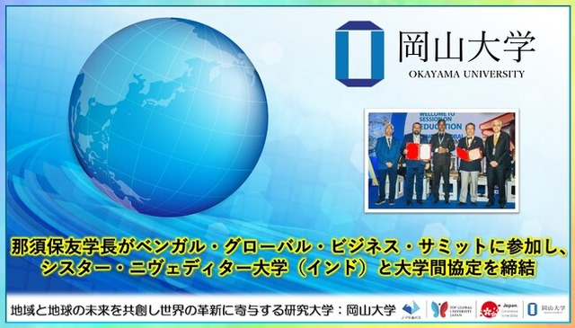 国立大学法人岡山大学(本部:岡山市北区、学長:那須保友)は、2025年2月5、6日にインド西ベンガル州コルカタ市で開催された「第8回ベンガル・グローバル・ビジネス・サミット(BGBS)」に、那須保友学長が出席しました。