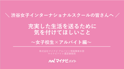 株式会社マイナビ(本社:東京都千代田区、代表取締役 社長執行役員:土屋芳明)が運営するアルバイト情報サイト『マイナビバイト』(https://baito.mynavi.jp)は、2月17日(月)渋谷女子インターナショナルスクールにて、「充実した生活を送るために気を付けてほしいこと」をテーマに闇バイトに関する啓蒙授業を開催し、女子生徒13人が参加しました。