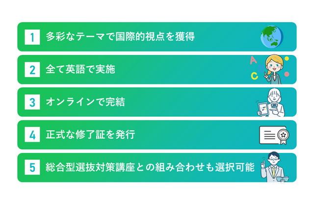 近年、総合型選抜や推薦型選抜入試では学力だけでなく、多面的な人間性や課外活動実績が評価される傾向にあります。特に海外機関によるオンラインプログラムへの参加実績は、国際性やコミュニケーション力、問題解決能力などを効果的にアピールする材料となっています。しかし、費用や物理的距離の問題から海外に行けない学生も多く、オンラインで完結する課外活動のニーズが高まっていました。