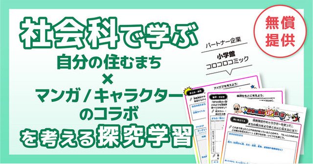 第一弾である日本マクドナルド社と連携した「国語における絵本をつくる探究学習プログラム」に続いて、第二弾となる今回は、株式会社小学館と連携した「社会科で学ぶ自分の住むまち×マンガ/キャラクターのコラボを考える探究学習プログラム」を提供いたします。