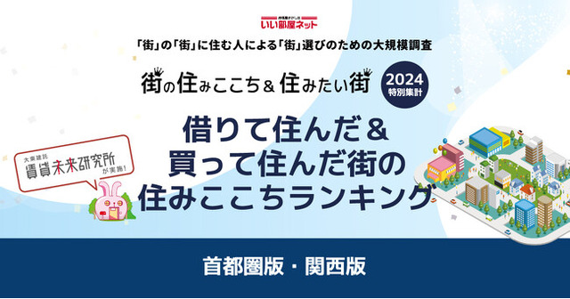 ・新聞・雑誌、テレビ・ラジオ等の報道関係者におかれましては、本リリースを掲載・報道または引用する場合には、「いい部屋ネット 借りて住んだ&買って住んだ街の住みここちランキング2024<関西版>」と出所の表記をお願いします。