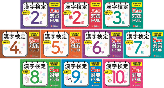 『漢字検定 5分間対策ドリル』 2級/準2級/3級/4級/5級/6級/7級/8級/9級/10級