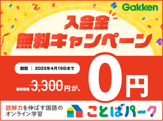 株式会社 学研ホールディングス(東京・品川/代表取締役社長:宮原博昭)のグループ会社、株式会社学研エデュケーショナル(東京・品川/代表取締役社長:川端篤)は国語のオンライン学習「ことばパーク」にて、2025年2月20日(木)から入会金0円キャンペーンを全国で開始いたしました。