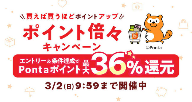 auコマース&ライフは、運営する総合ショッピングサイト「au PAY マーケット」において、2025年2月25日から3月2日までの期間、ポイント倍々キャンペーンを開催します。