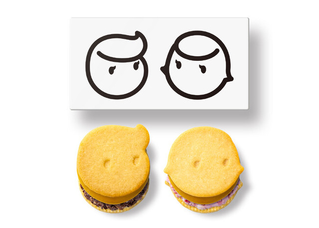 薄焼きのバタースカッチと、フリーズドライのフランボワーズとフィアンティーヌ入りのメレンゲショコラを、ミルフィーユサブレでサンドしています。フランボワーズのメレンゲがホワイトチョコレートバニラ香を吸収して薫り高くフルーティーなフレーバーに、メレンゲのサクサクの食感とフランボワーズの爽やかな酸味の今までにない新しいお菓子となっています。