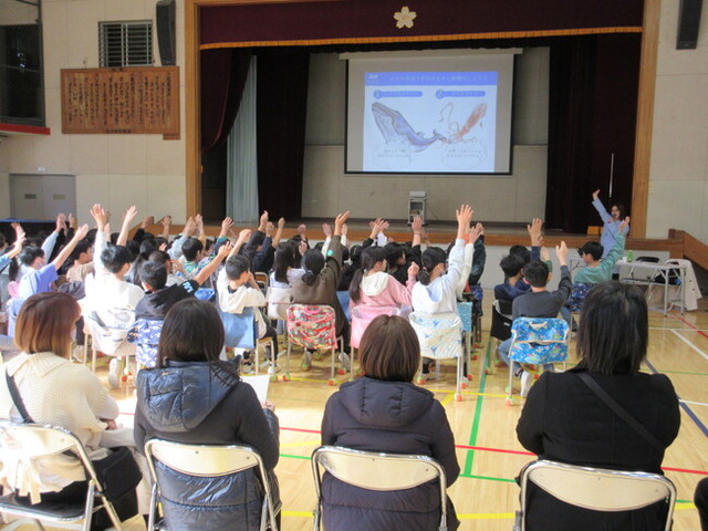 視力低下が問題になっている現代で「目のケア」についてご講演いただいたこと、子ども、保護者の方々、教職員にとってとても有意義な時間になったと思います。私も養護教諭として視力検査や保健指導などを通し、子どもたちの低視力の早期発見に努めたいと思いました。ありがとうございました。(養護教諭・芝崎先生)