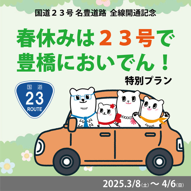【国道23号名豊道路 全線開通記念】春休みは23号で豊橋においでん!特別プラン