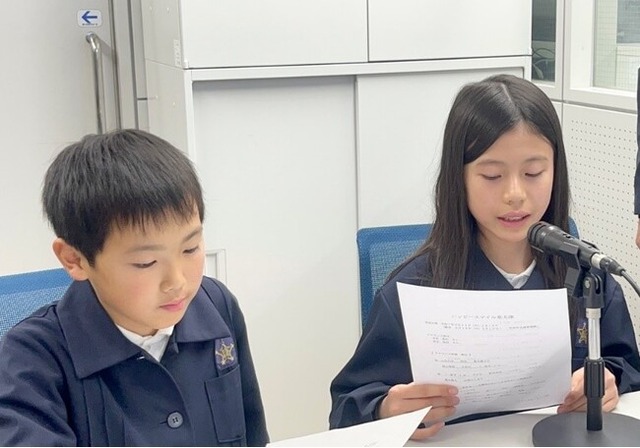 “今度はもっと、聞き取りやすいように” と何度も練習した読み原稿を手に意気込みを見せる浜小学校5年生の2人