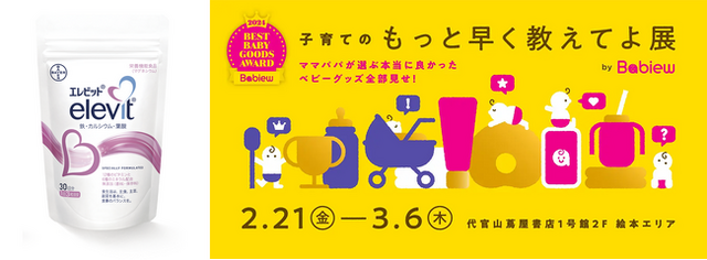 バイエル薬品株式会社(本社:大阪市、以下「バイエル薬品」)の産婦人科・婦人科医師推奨 No.1*のプレナタル**サプリメント「エレビット(R)」は、2025年2月21日(金)~3月6日 (木)の2週間に代官山 蔦屋書店で開催されるBEFFY株式会社が主催するイベント「子育てのもっと早く教えてよ展 by Babiew ~ママ・パパが選んだ本当に良かったベストベビーグッズ全部見せ~」に展示で参加します。