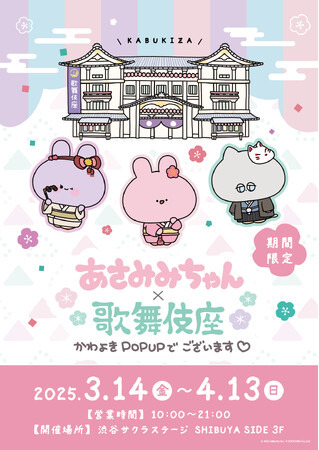 松竹株式会社(東京都中央区、代表取締役社長 高橋 敏弘)事業推進部は、2025年3月14日(金)より、「Shibuya Sakura Stage (渋谷サクラステージ)」及び、通販サイト「松竹歌舞伎屋本舗(しょうちくかぶきやほんぽ)」にて、“あなたの気持ちを浅くする寄り添いうさぎ”として人気を誇るキャラクター「あさみみちゃん」と「歌舞伎座」のコラボレーショングッズを発売いたします。