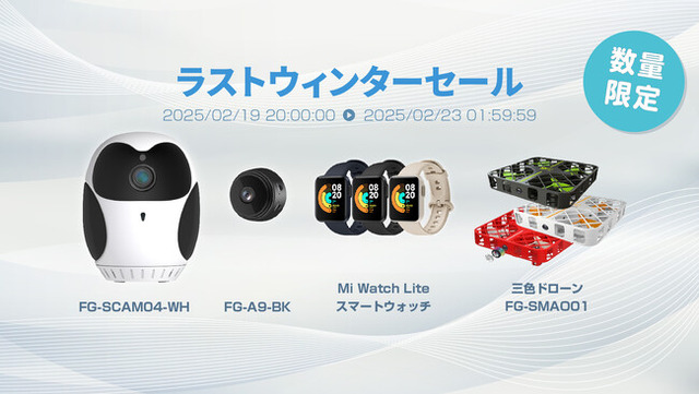▼FG-SCAM04-WH、FG-A9-BK、Mi Watch Lite、FG-SMAO01▼期間中(2/19 20:00~2/23 1:59)数量限定販売