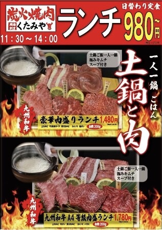 焼肉のおともとして欠かせない「ご飯」。1.5合サイズの専用土鍋で炊いたこだわりの熊本県産のご飯をランチタイムには1人1鍋ご提供しております。土鍋ご飯はご注文をいただいてから火を入れ、それぞれの卓ごとに炊きたてをお届け。土鍋でふっくらと炊き上げることで、お米本来の旨みを最大限引き出しています。ご飯も手間暇をかけることで、ワンランク上の味わいに。お値打ち価格でご提供する和牛と共に、価値ある美味しさをご堪能ください。