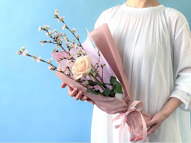 桜をシンプルなブーケに仕上げました。コンパクトなサイズでちょっとしたギフトやご自宅用にもおすすめです。