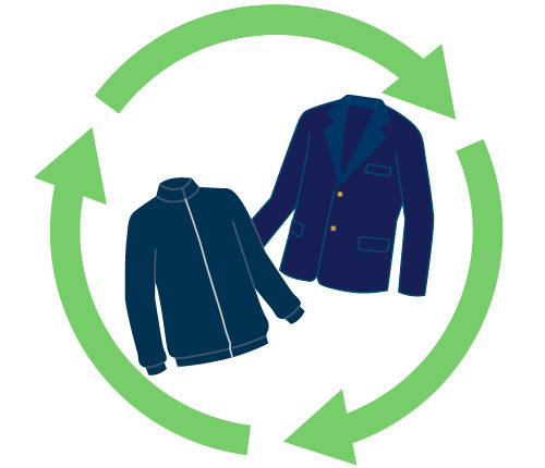 学校制服・体操服は、学校生活という長い時間着続けられるように一般衣料に比べて耐久性などに優れたものが多く、卒業時にまだ着られる状態であることから、学校やPTAなどが寄付を募り、その学校に入学・在学する生徒に無償や手頃な価格で譲る活動や、リユース事業者などが買い取って販売するなどのリユース(再利用)が行われています。
