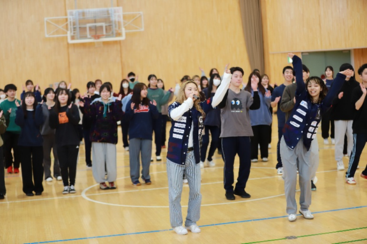 NSGグループの国際こども・福祉カレッジは、2025年2月13日(木)学生を対象に、授業「こどもと体育」特別講座を行いました。この講座では、新潟市を拠点に世界各国で活躍するダンスチーム「Chibi Unity」から2人のプロダンサーを講師として招き、学生たちが仲間と一緒に体を動かし、ダンスを楽しみ、迫力あるプロのダンスを直接感じる感動体験となりました。