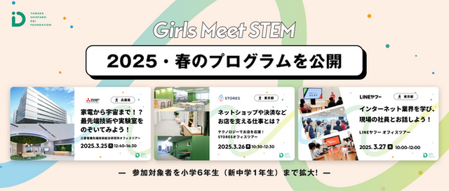 公益財団法人山田進太郎D&I財団は、日本のSTEM(科学・技術・工学・数学)分野における女性の大学進学率向上を目指し、中高生女子を対象としたSTEM(理系)体験プログラム「Girls Meet STEM」を展開しています。このたび、2025年春休みに実施する対面プログラムを3つ公開しました。