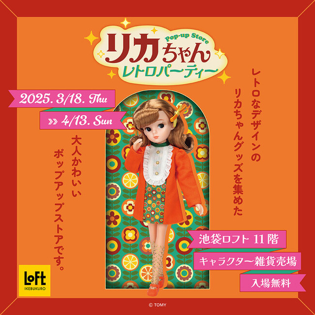マンガ、アニメ、特撮などを始めとするサブカルチャーをテーマとした企画展を開催・運営している株式会社クレイジーバンプは2025年3月18日(火)より池袋ロフト11階にて1967 年に誕生した着せ替え人形「リカちゃん」(発売元:株式会社タカラトミー)のPOP-UP STOREを開催いたします。