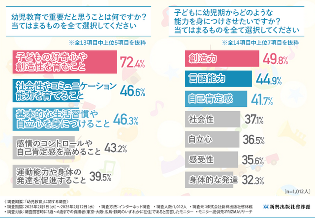 幼児教育で重要だと思うこと1位は「子どもの好奇心や創造性を育むこと」