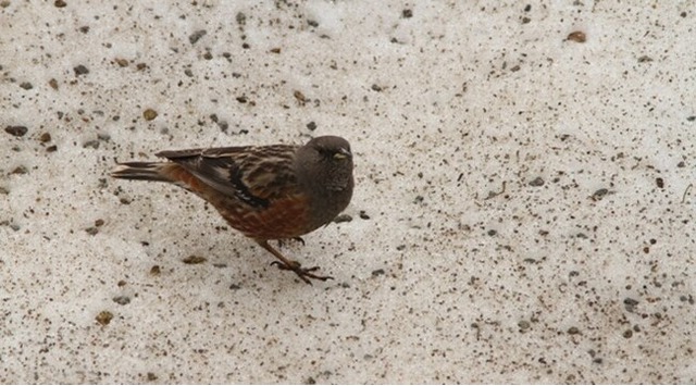 図2.高山帯の残雪上で餌を探すイワヒバリ