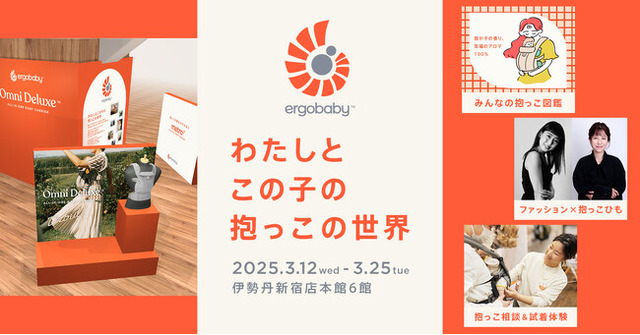 株式会社ダッドウェイ(本社:神奈川県横浜市、代表取締役社長:大野 浩人)は、日本正規総代理店として輸入販売する『Ergobaby(エルゴベビー)』より、2025年2月28日に抱っこひも「OMNI Deluxe(オムニデラックス)」、3月26日にベビーカー「Metro3(メトロスリー)」を発売いたします。これを記念して『わたしと、この子の抱っこの世界』をコンセプトとしたPOP-UPイベントを、伊勢丹新宿店本館6館にて2025年3月12日(水)~3月25日(火)の期間限定で開催。Metro3は、同会場で先行販売いたします。