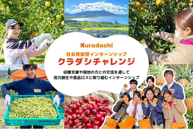 ソーシャルグッドマーケット「Kuradashi」を運営する株式会社クラダシ(本社:東京都品川区、代表取締役社長CEO:河村晃平、以下「クラダシ」)は、2025年6月より日本全国9か所で開催予定の社会貢献型インターンシップ「クラダシチャレンジ」の参加学生の募集を2月28日より開始いたします。2025年のクラダシチャレンジは9か所を5グループに分け、参加学生は2地域での収穫・作業体験、各地域で役場の方々との意見交換や現地観光などを実施する予定です。