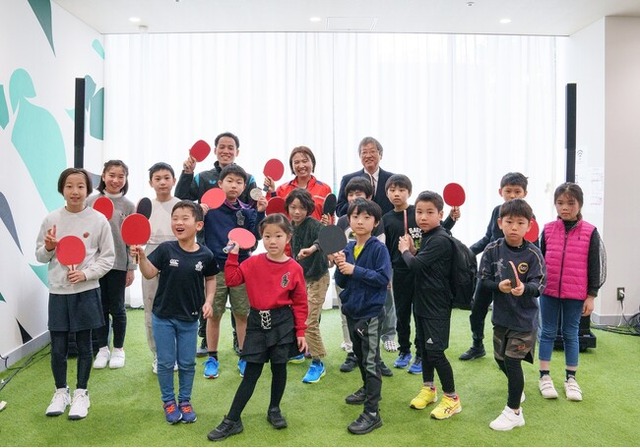ゲストには元卓球日本代表の平野早矢香氏を招き、ラリーをするなど小学1年生から4年生の児童14名が楽しく学べる卓球教室を実施しました。教室の開始後には、平野早矢香氏と東京歯科大学口腔健康科学講座スポーツ歯学研究室 客員教授・武田友孝氏のトークショーにおいて、スポーツパフォーマンスにおいて「噛むこと」が重要であることや、普段の食事においてもよく噛んで食べること、口腔健康が運動能力と密接に関わっていることについてわかりやすくレクチャーしました。