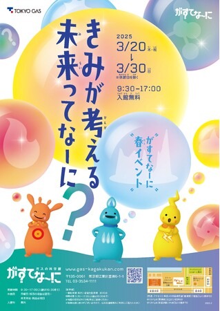 東京ガスの企業館「がすてなーに ガスの科学館」では、3月20日(木・祝)~3月30日(日)の期間で“春イベント きみが考える未来ってなーに?”を開催します。
