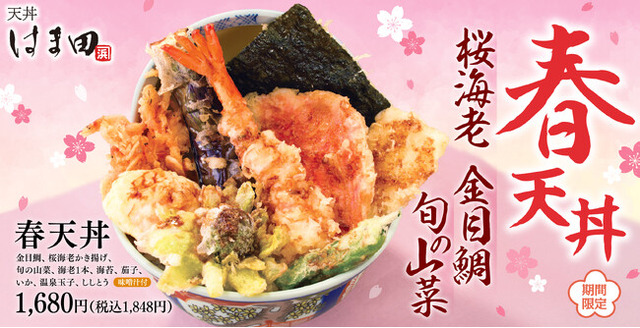 アークランドサービスホールディングス株式会社の子会社、とんかつ専門店「かつや」を展開している株式会社かつや(本社:東京都千代田区/代表:大内 勇一)は、2025年3月11日(火)より国内「天丼はま田」3店舗にて、期間限定メニュー「春天丼」を販売開始いたします。