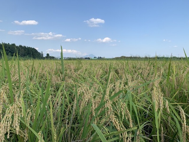 遠くに筑波山を望む田園地帯。今回稲作を行う田んぼは、ヤマナカから歩いて5分程度の場所にあります。
