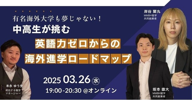 GIO CLUB株式会社(本社:東京都中央区、代表取締役:岡野健三)は、2025年3月26日に、「英語力ゼロからの海外留学ロードマップ」をテーマに、「MMBH留学」との共催セミナーを開催します。