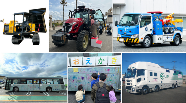 本イベントでは、アウトレット周辺や、県内に事業拠点を構える様々な企業や団体と協業し、お子様から大人まで施設を訪れる県内外のお客様に向けて、楽しみながら仕事への理解を深めるきっかけとして実施します。バスやレッカー車、デリケートな競走馬を安全に運ぶ馬運車、土木建設現場・災害時にも活躍するキャリアダンプや農業用の大型トラクターといった、合計5種類の「はたらくくるま」が勢揃いします。