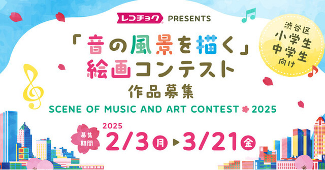 株式会社レコチョク(本社:東京都渋谷区、代表取締役社長:板橋徹、以下「レコチョク」)は、渋谷区在住・在学の小中学生の皆様を対象とした絵画コンテスト【「音の風景を描く」絵画コンテスト in 2025】の受賞者への副賞を追加することをお知らせいたします。