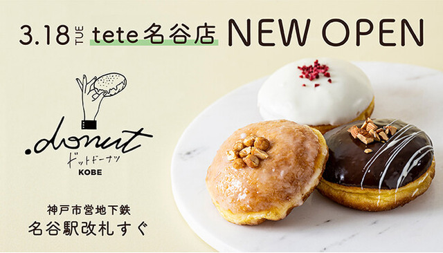 神戸を中心に大阪・東京で日本各地の郷土飲食店を展開する株式会社ワールド・ワン(本社:兵庫県神戸市,代表取締役:河野圭一)は、生ドーナツ専門店「.donut(ドットドーナツ)」の3号店『.donut tete名谷店』を3月18日(火)にオープンします。心を込めた手づくりドーナツで、家族や仲間との楽しい時間に寄り添うお店を目指します。