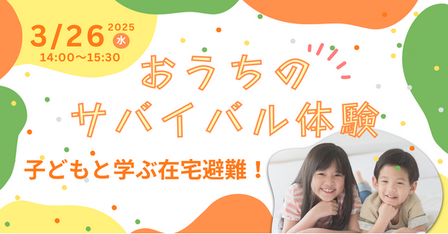 3月26日(水) 開催「子どもと学ぶ在宅避難!おうちのサバイバル体験」